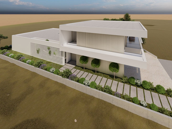 This two-storey residential structure in Lakatamia, Cyprus accommodates two families with a ground floor house and first floor roof flat design. Our structural engineering solution incorporated a strategically positioned steel column at first floor level to support glazing systems while maintaining a slim, almost invisible profile that preserves unobstructed views for the upper flat residents. The reinforced concrete structure combined with selective steel elements demonstrates our ability to balance structural requirements with architectural aesthetics. This project showcases our expertise in multi-family residential design, mixed structural materials, and value engineering solutions across Lakatamia, serving families seeking efficient dual-occupancy housing solutions.